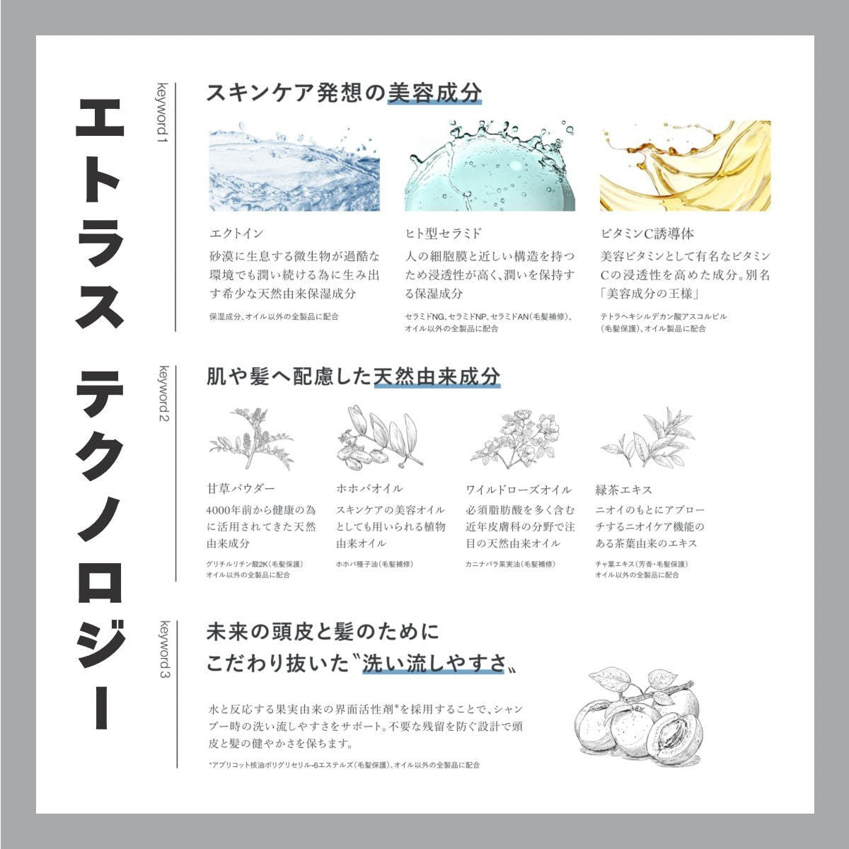 ヘアスタイリング後に手に残ったオイルは、スキンケアとして肌の保湿にも使えるマルチユースオイル。